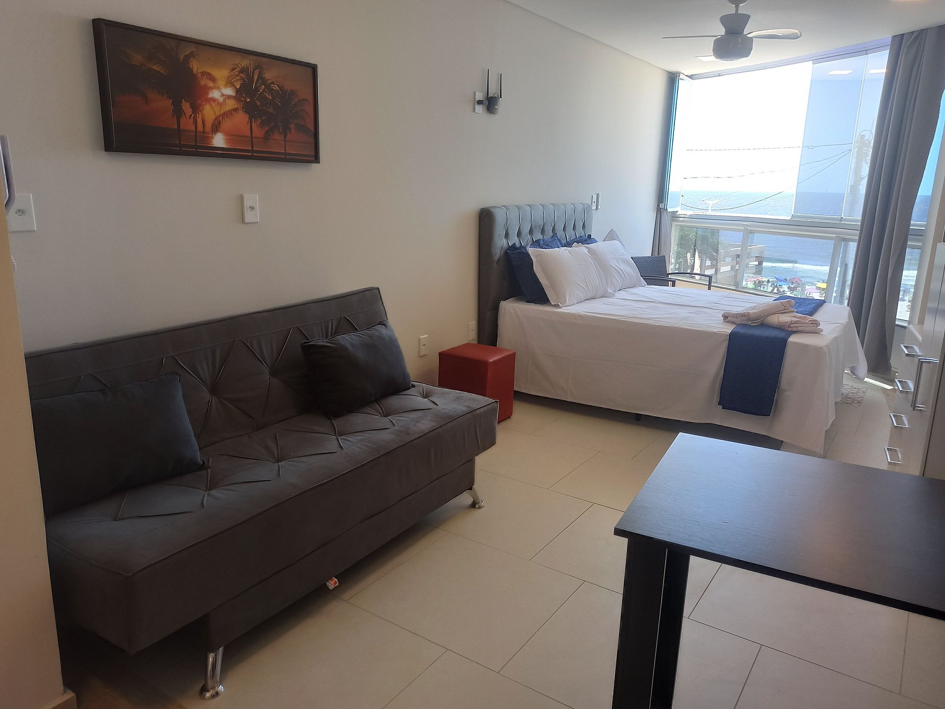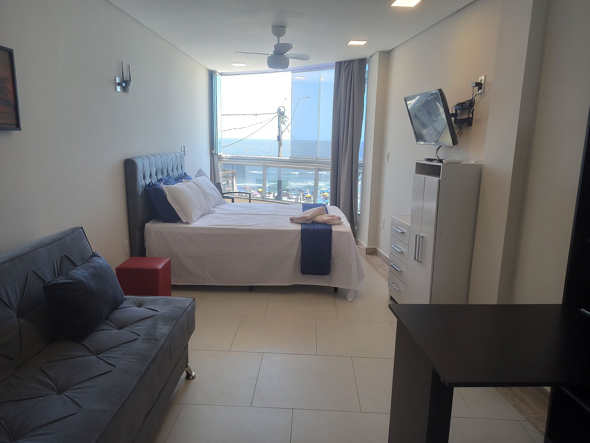 Studio decorado para sua estadia e perfeito para casais ou famílias, com estrutura para até 4 pessoas. Apartamento do tipo pé na areia, basta atravessar a rua. Farmácia, padaria, mercados a 5 minutos andando.