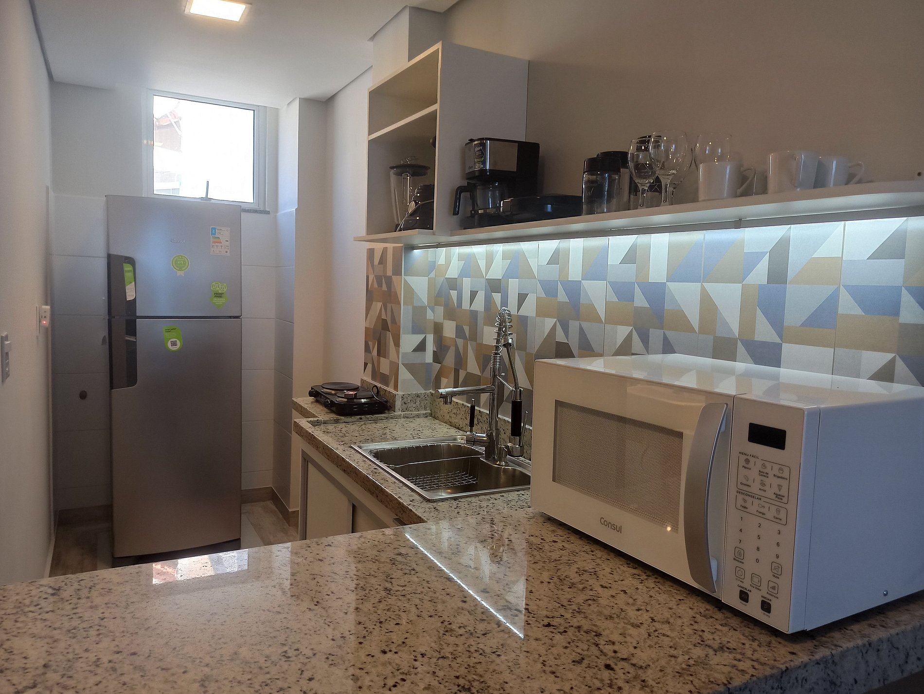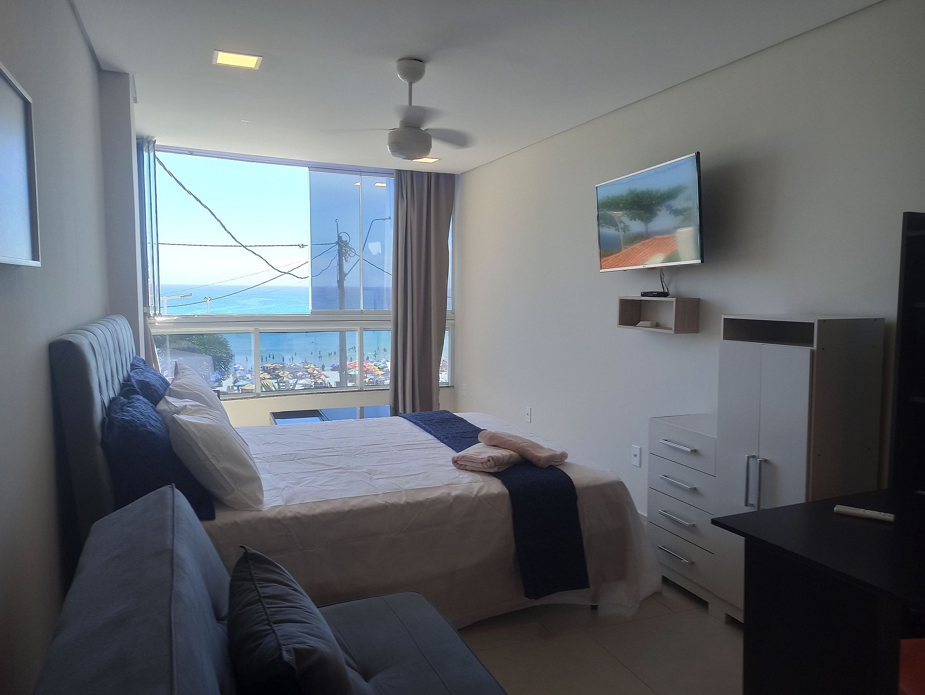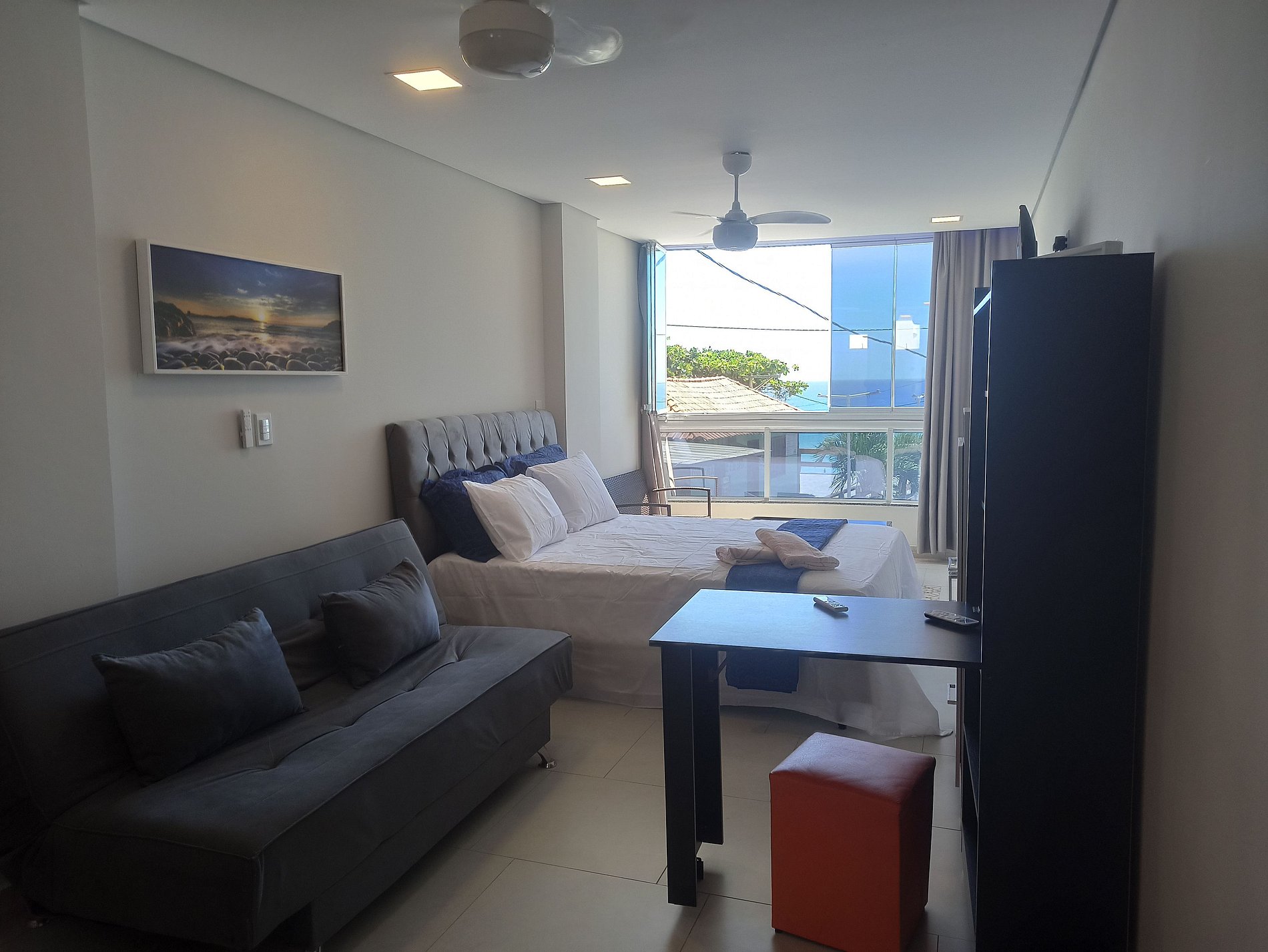 Studio decorado para sua estadia e perfeito para casais ou famílias, com estrutura para até 4 pessoas. Apartamento do tipo pé na areia, basta atravessar a rua. Farmácia, padaria, mercados a 5 minutos andando.