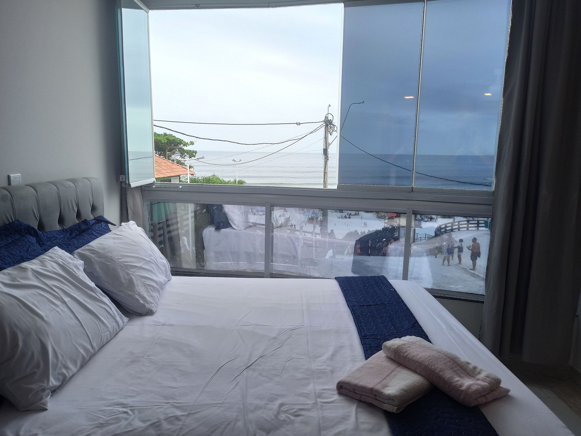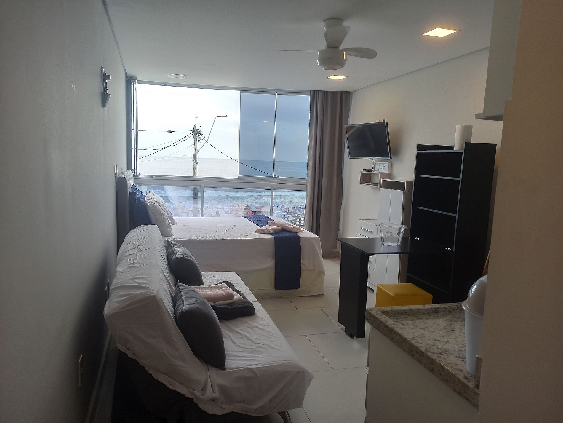 Os apartamentos têm vista de frente para a praia e contam com: